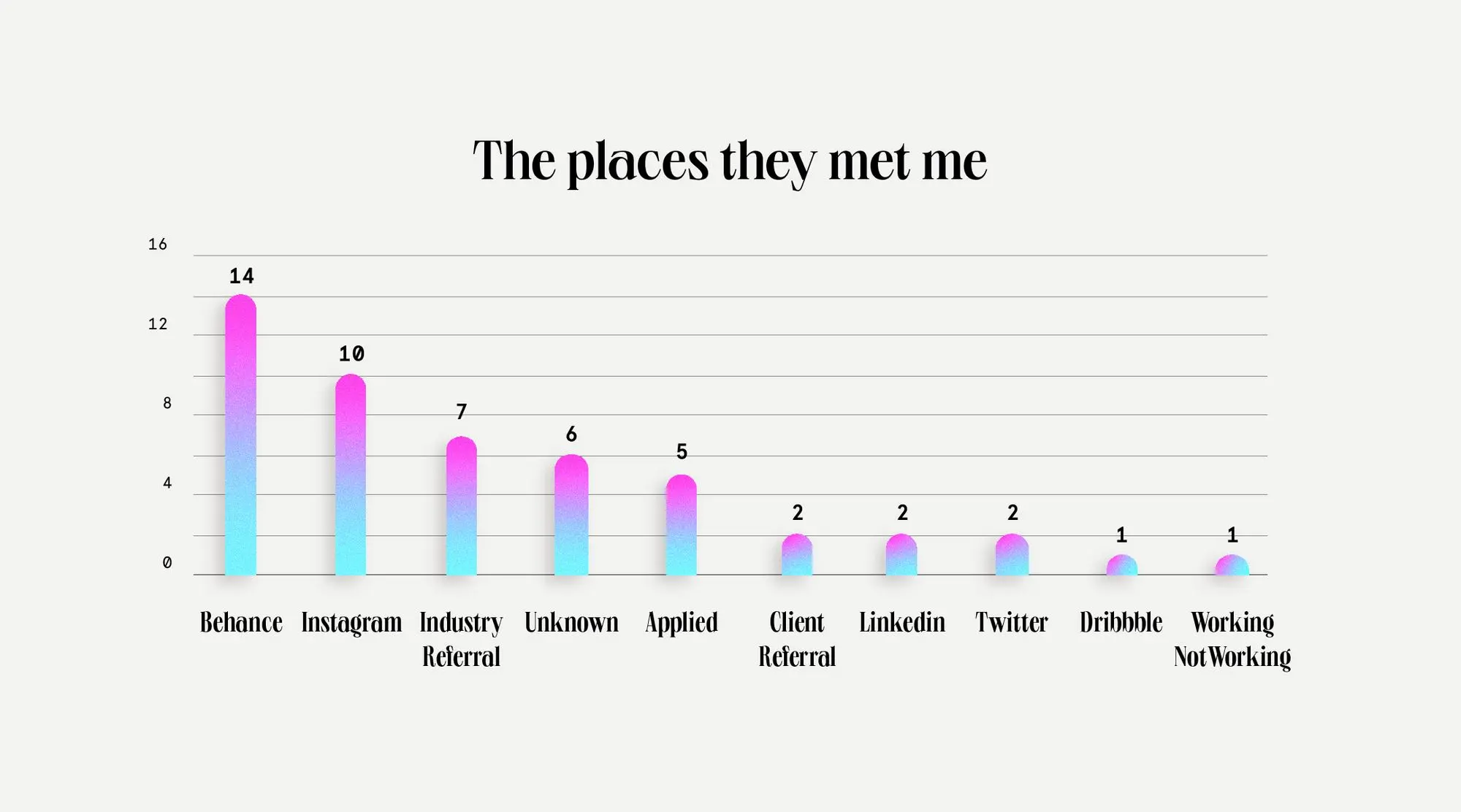 I also believe that the number of Industry Referrals I got really shows that it's important to maintain good relationship with clients AND with other creatives, whether they are other Elevate members or some designers online you've never met! The latter may also recommend you to their clients for their dataviz needs. I've received work from plenty of other data visualization designers (Alli! Duncan!) but also I have passed work to others when I couldn't or didn't want to take the job.